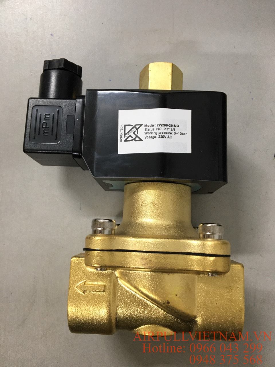 | Van điện từ trong hệ thống máy nén khí là thiết bị kiểm soát dòng khí bên trong hệ thống đường ống dựa trên nguyên lý chặn đóng mở do lực tác động của cuộn dây điện từ. Van đện từ 2W200-20-NO là van đện từ thường mở. Ở trạng thái bình thường van 2W200-20-NO luôn mở, khi được cấp đện thì van sẽ đóng lại. |