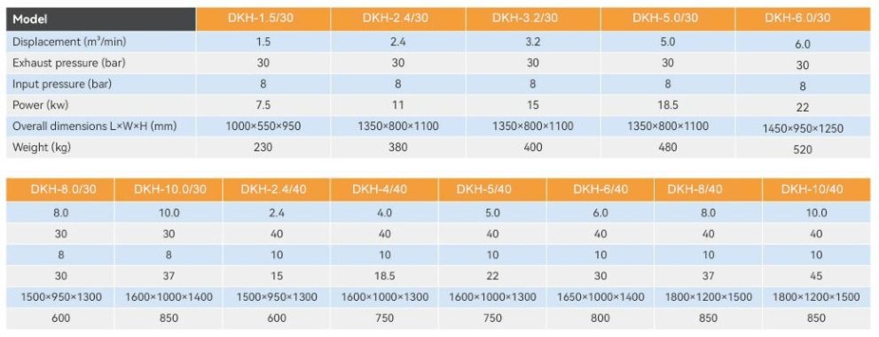 Với thiết kế có thể nhận khí đầu vào là áp suấy thấp (8-10 bar) và nén lên áp suất cao phù hợp cho dây truyền đúc thổi chai. So sánh với máy piston truyền thống nó có lợi điểm là hiệu suất cao hơn và tiếng ồn thấp hơn. Đặc biệt là phù hợp với các nhà máy có nhu cầu lưu lượng khí lớn