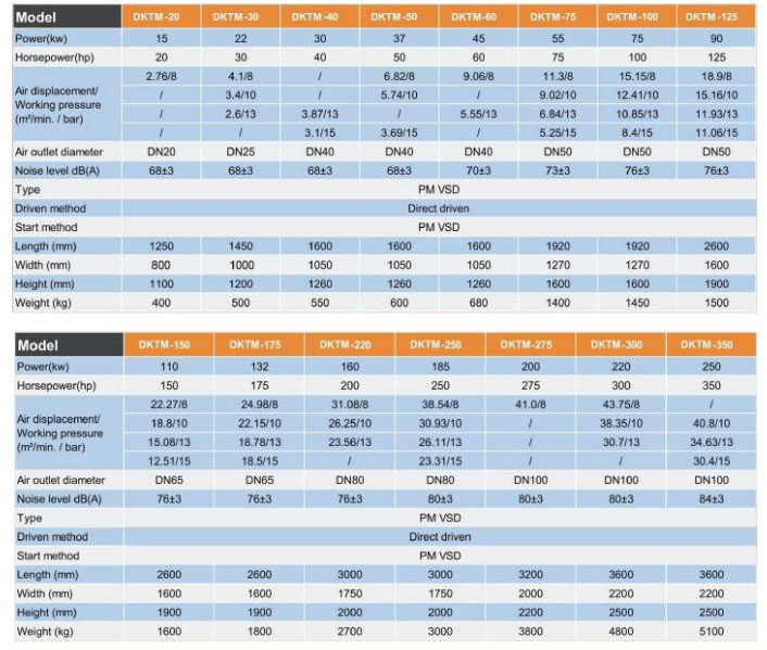 MÁY NÉN KHÍ TRỤC VÍT BIẾN TẦN 2 CẤP DOKYUNG DKT BAO GỒM CÁC MODEL SAU: