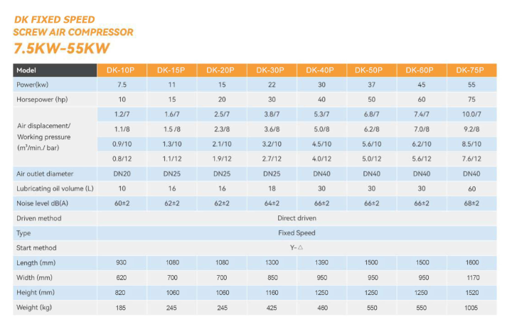 ác model máy nén khí trục vít DOKYUNG DK-P bao gồm: