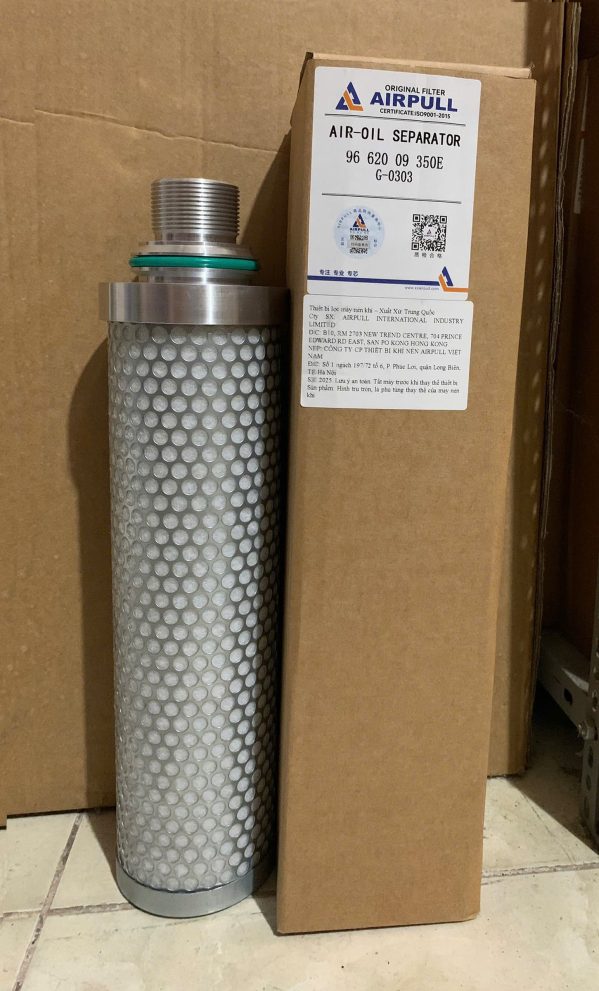 Tách dầu máy nén khí có tính năng cơ bản là phân tách dầu lẫn trong không khí dưới dạng sương dầu. Đây là một trong 3 bộ phận quan trọng ( Tách dầu, lọc dầu, lọc khí) cần thay thế định kỳ để đảm bảo máy nén khí được hoạt động trơn tru. Tách dầu máy nén khí có thể làm sạch nguồn khí trước khi sử dụng, làm tăng tuổi thọ của máy nén khí, độ bền được nâng cao, đảm bảo việc máy móc không han gỉ, bào mòn và việc vận hành máy móc trong dây truyền tốt hơn. Tách dầu (96 620 09 350E) là loại lọc tách có hình trụ tròn.