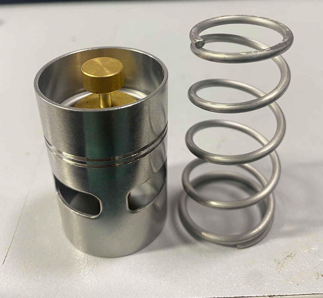 Van hằng nhiệt ( Thermostatic Valve) có chức năng điều tiết lượng dầu đi lên két làm mát đảm bảo cho nhiệt độ dầu và đầu nén ổn định trong dải cho phép. Khi dầu ở nhiệt độ cho phép, dầu sẽ được đi tắt thẳng đến lọc dầu và đầu nén. Khi dầu nóng, dầu sẽ được đưa về két làm mát để giải nhiệt rồi sau đó quay trở lại đầu nén.